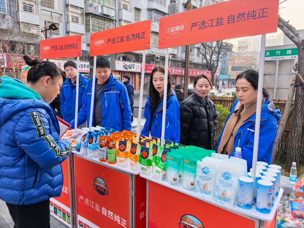 活动现场设立了产品展示区,集中呈现了江盐集团旗下的低钠盐、未加碘食用盐、雪花盐、钙盐等多种盐产品。工作人员详细讲解了不同品类食盐的特性与适用场景,帮助居民建立科学用盐的认知基础。