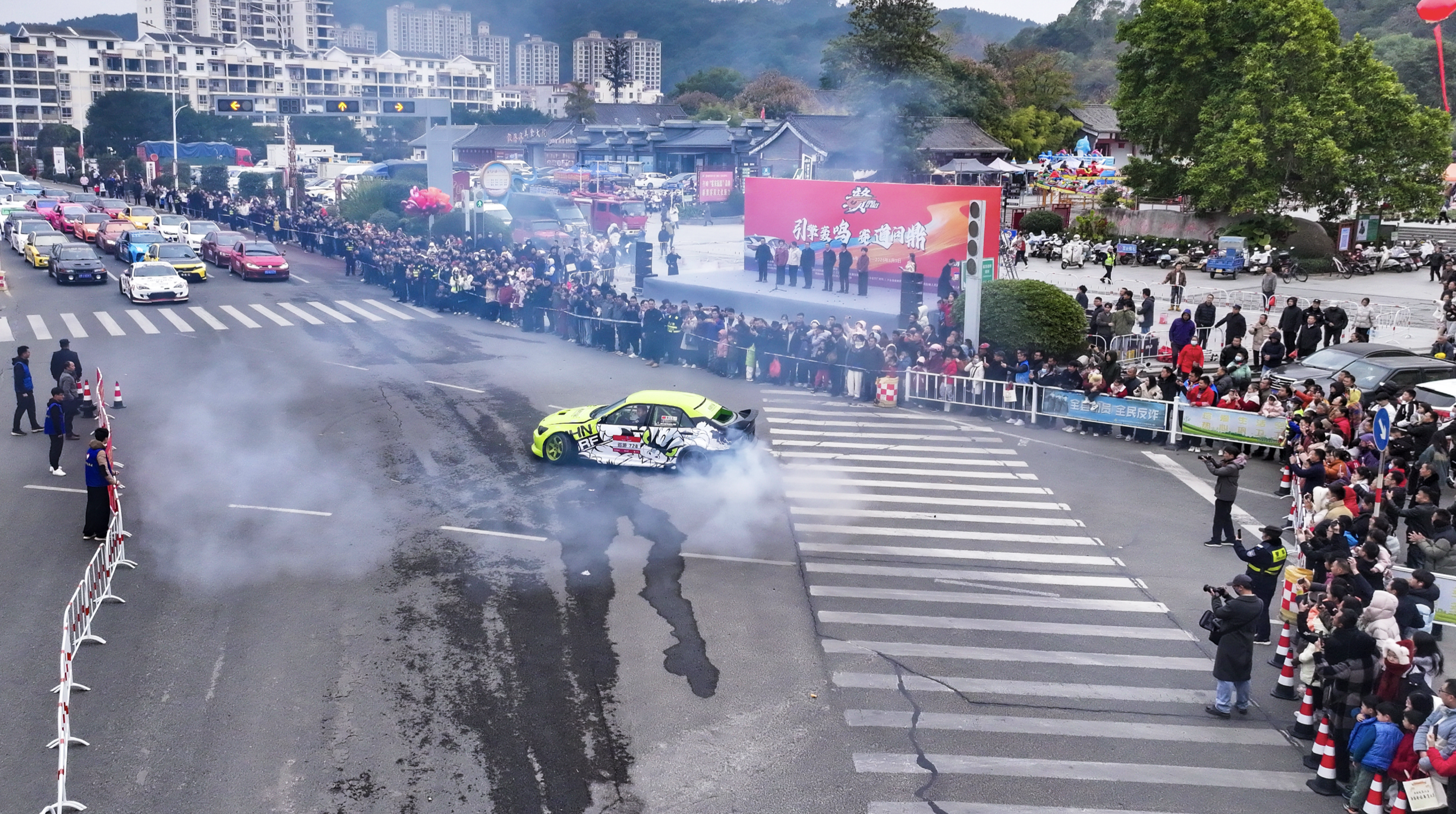 巡游余温未散,赛道激情再燃。竞速拉力赛、直线加速赛接连上演,漂移体验同步开启。发令枪响,赛车如箭离弦,车辆精准漂移,轮胎擦地嘶吼,白烟腾空而起。看台区,尖叫与呐喊此起彼伏,气氛持续沸腾。改装车展区内,个性座驾整齐排列,车迷们围聚交流、拍照打卡,热闹场景与赛道狂飙相映成趣。