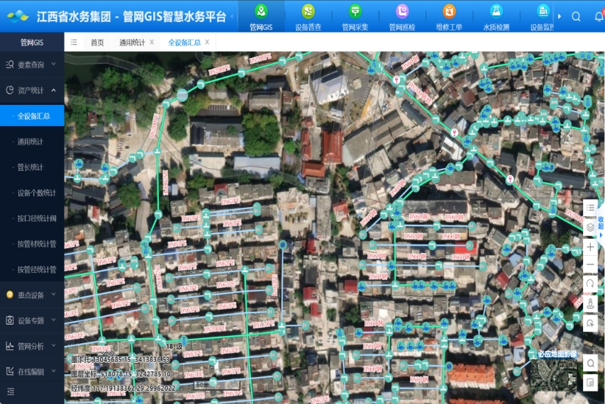 强化智慧运维,提升管控效能。江西水务构建“人工巡查+智慧监测+数据治理”三位一体运维体系,推动管网漏损管控提质增效。一是建立常态化检漏机制,由原各区域中心联合供水公司成立专业化测漏队伍,实行网格化管理,每周开展多次主动检漏,以水厂夜间最小流量为基准值,明确同等用户规模下年底夜间最小流量同比下降10%以上的目标。二是推进管网数字化改造,编制江西水务管网数据采集企业标准,将各个水司的管网资产进行数字化转化,累计接入GIS系统管网8300公里(DN50及以上),设备设施41万个点位,实现管网资产可视化管控,辅助管网巡检维修提质增效。三是实施靶向改造工程,针对DN100及以下频发爆管区域,制订改造计划,从硬件层面根除管网漏损隐患。以上高县为例,上高润泉通过分级建设DMA分区计量体系,成功锁定团结路右侧城中村区域管网隐蔽漏点,维修后夜间流量下降且实现时段归零,月供水量回归合理区间。