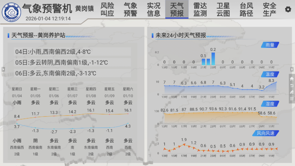 同时,中心引入的气象预警系统严格对标省“631”(6小时预警、3小时通报、1小时叫应)机制,布设于重点边坡,具备24小时不间断叫应、预警与预报功能,实现“分钟级”数据采集与“定制化”信息推送。安源养护负责人熊辉介绍,通过部署多要素监测设备实时感知环境指标,并融合养护、救援、执法、交警、气象等多方力量,形成“分级响应、联动管控”模式,推动风险防控从“被动抢险”向“主动防御”转变。