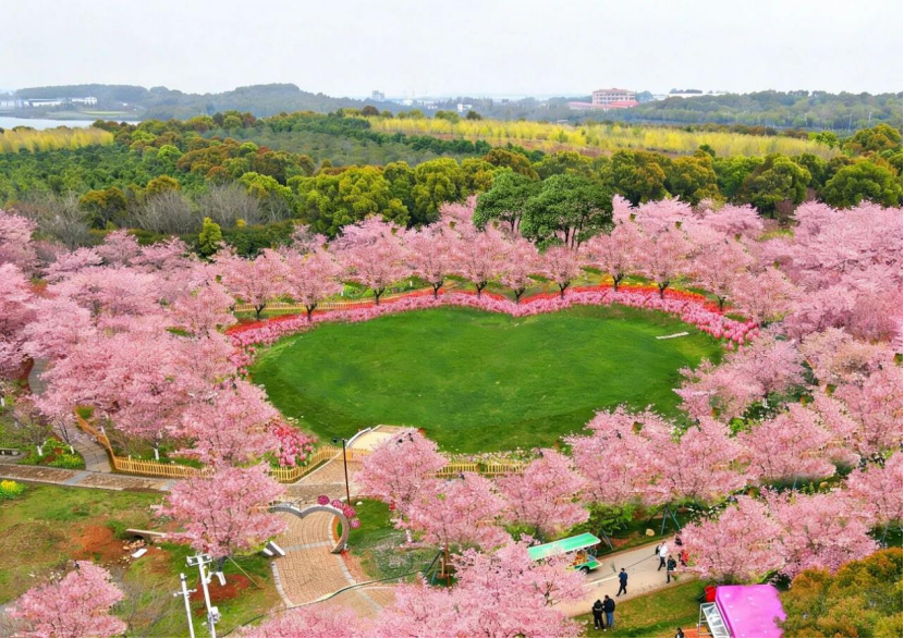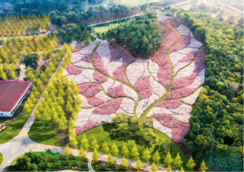 花海地点:①如意大道中央花坛②心型草坪③梅园入口