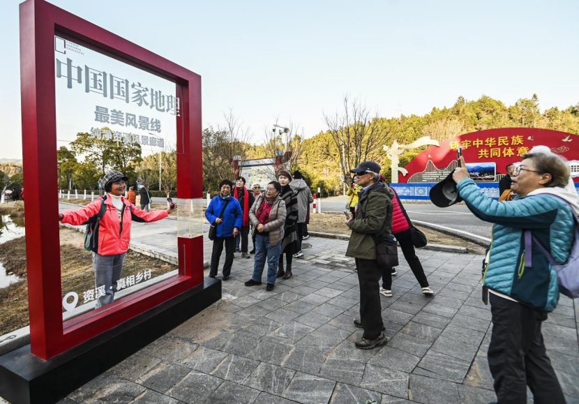 游客正在打卡点留下美好时光。