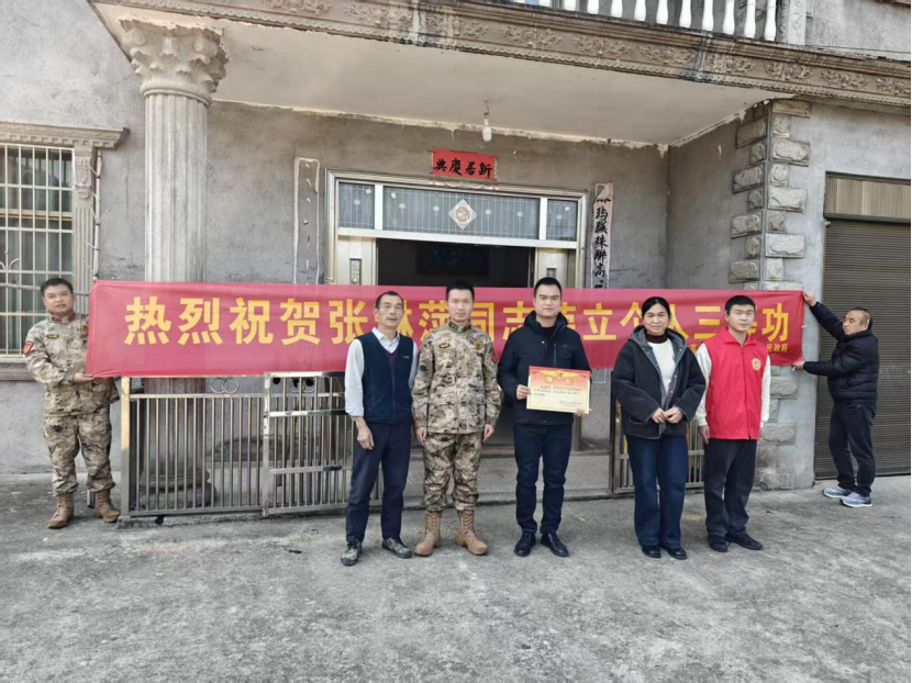 近日,江西省万载县高村镇武装部牵头联合镇退役军人服务站、村“两委”干部组成专项“报喜团”,带着党和政府的关怀与全镇人民的敬意,将三等功喜报郑重送到立功现役军人家中。