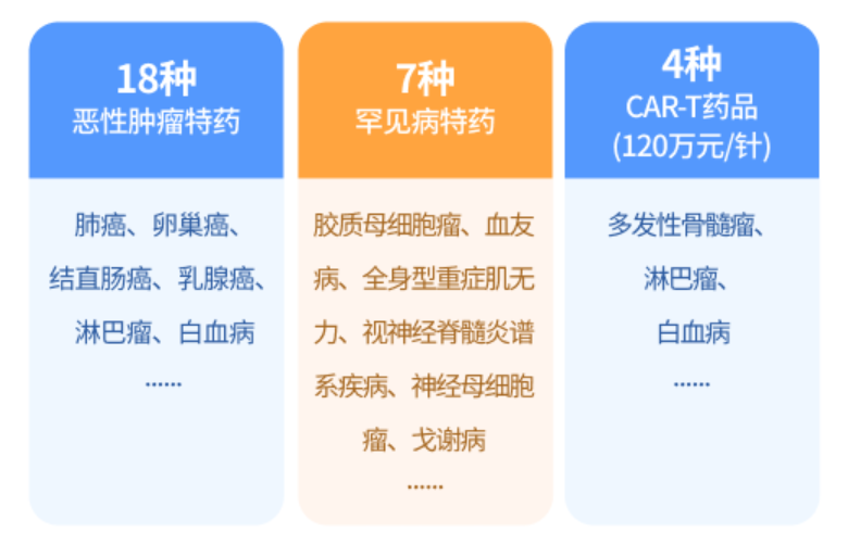 覆盖肺癌、乳腺癌等多种高发恶性肿瘤及罕见病所需药品。
