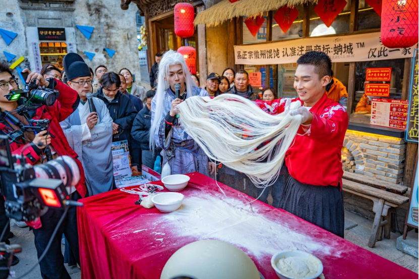 活动期间,婺源弦高城特邀近百位吉尼斯世界纪录保持者与全国顶尖技艺达人同台献艺。无论是巧夺天工的手工艺,还是惊险刺激的民间绝技,都在弦高城精彩呈现,活动以“固定舞台”、“街区实景NPC”两种互动模式,观众与游客将化身“探索者”,在直播镜头与实地游览中,随时“触发奇遇”——可能在转角邂逅一位正在创作的非遗传人,在中心广场遇见吉尼斯纪录保持者的即兴表演,让游客在弦高城沉浸式体验“中国奇技”。