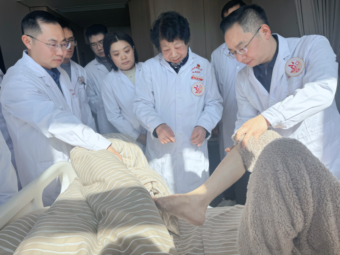 讨论结束后,张小萍教授在多学科团队陪同下,亲自来到患者床边。面对这位年轻的病友,张教授以温和的态度,进行了细致入微的望、闻、问、切四诊合参。她不仅关注患者的舌苔脉象、症状及体征等生理状况,更耐心倾听患者的感受与担忧。在诊疗中,张小萍教授特别注重心理疏导,以渊博的学识和温暖的话语,帮助患者树立战胜疾病的信心,解释了中医药在调节机体状态、助力康复中的积极作用。同时,她结合患者体质与当前阶段,给出了具体的膳食指导,将“药食同源”的理念落到实处,叮嘱其通过日常饮食配合治疗,巩固疗效。查房过程中,张小萍教授不仅诊治患者,更将其数十年的临床心得与学术思想,融入每一次病情分析、每一处用药讲解之中,为在场的医护人员带来了一场高水平的床边教学。她反复强调:“中西医结合治疗肿瘤,绝非简单的‘中药+西药’,而是要在深刻理解疾病现代病理机制与治疗手段的基础上,充分发挥中医整体观、辨证论治的优势,实现‘1+1>2’的协同效应。现代医学精准‘攻邪’,传统中医着力‘扶正’与‘调衡’,两者目标一致,路径互补,共同为患者谋求最大临床获益。”