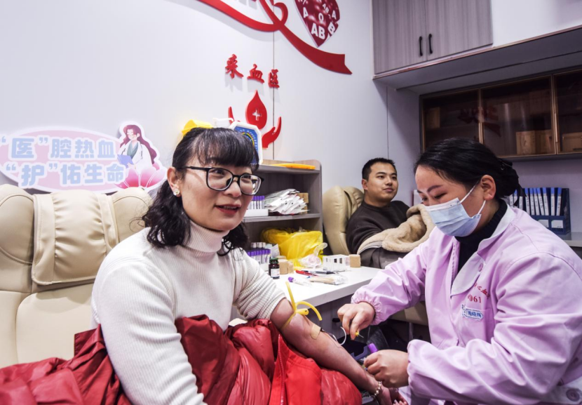 2026年1月24日,市民在江西省抚州市资溪县繁华街爱心献血屋无偿献血。当日上午,首个爱心固定献血屋在山城正式启动。当地机关、企业干职工、红十字会志愿者和返乡农民工纷纷走进献血屋,为急需用血的患者传递生命的希望。(吴志贵)