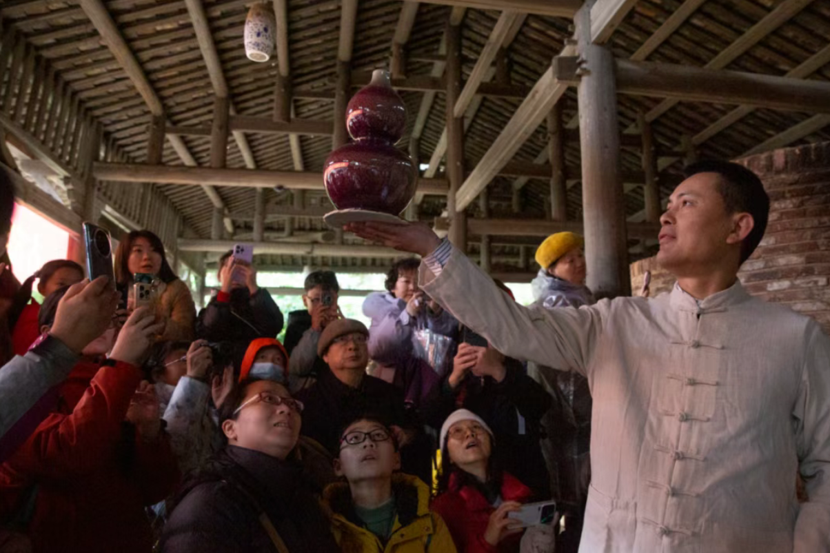来自云南昆明的程女士说:“我觉得古窑今天的开窑活动很酷!我们是第一次来到江西,来之前从来都没有见过这种的非遗活动,这里保留了手工制瓷的步骤、传统柴烧瓷窑,我觉得很了不起。也借着新年第一窑的福气,祝大家日子过得红红火火。”