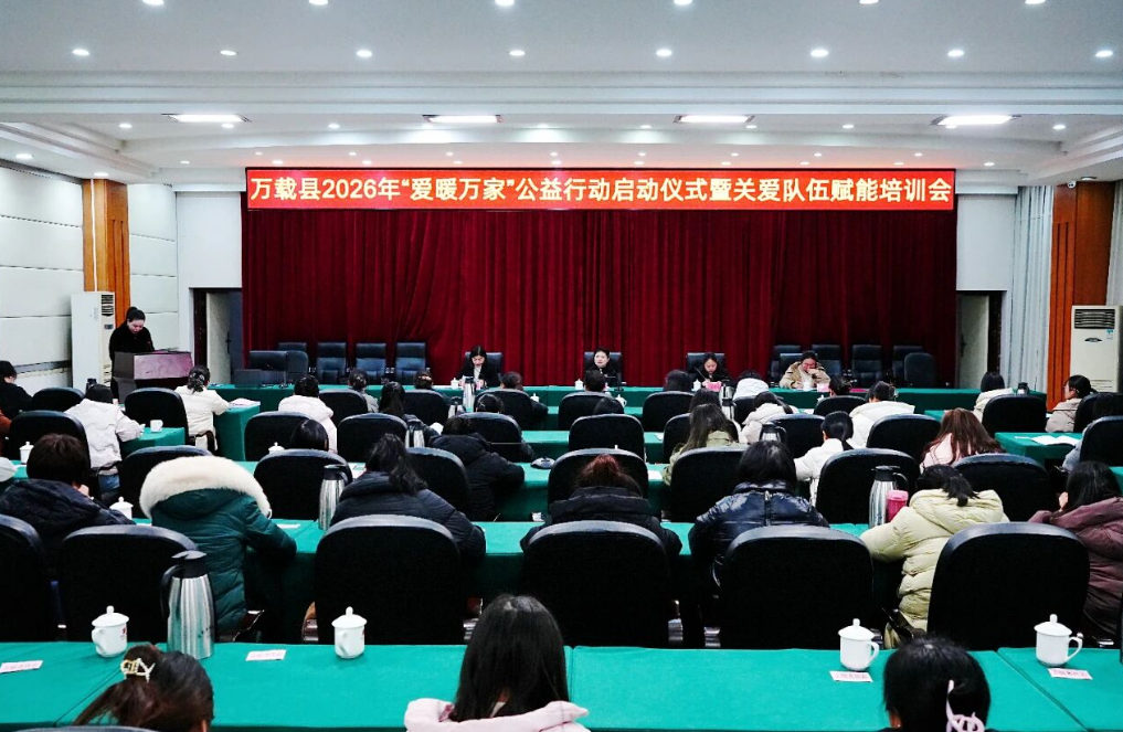 2月10日,万载县2026年“爱暖万家”公益行动启动仪式暨关爱队伍赋能培训在万载县行政服务中心三楼举行,一场聚焦困难儿童的公益帮扶行动正式启幕。
