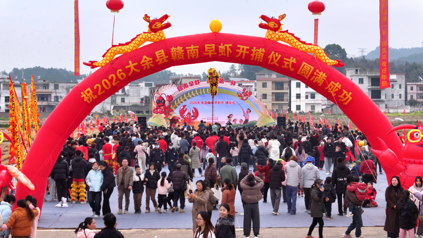 春水初暖,虾跃人欢。2月10日,2026大余县“赣南早虾”开捕仪式在新城镇水南村举行。来自农业科研院校相关专家教授、小龙虾主产区行业协会代表、美食类网红等齐聚一堂,共同见证了这场展现“赣南早虾”品牌魅力的丰收盛会。