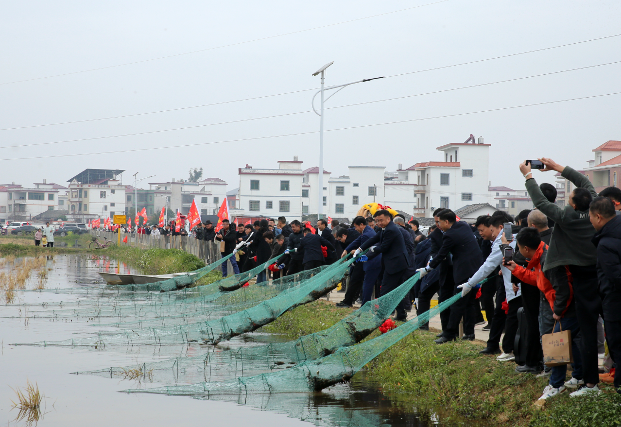 随着一声清亮锣响,嘉宾们共同拉起“新春第一篓”,只见一尾尾小龙虾活蹦乱跳地出水,标志着大余县首批“赣南早虾”正式上市。田间瞬间欢腾起来,孩子们蹲在田埂看得入神,年轻人举着手机争相记录,春日的暖意与丰收的热气在此交融。