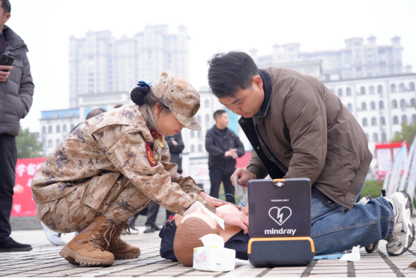 紧扣群众急需、实战实用,采取“理论讲解、示范教学、实操练习”的方式,手把手向广大群众普及心肺复苏(CPR)、AED机操作使用、气道异物梗阻急救、创伤止血包扎等实用急救技能,让大家听得懂、学得会、用得上,真正走进群众、贴近生活。