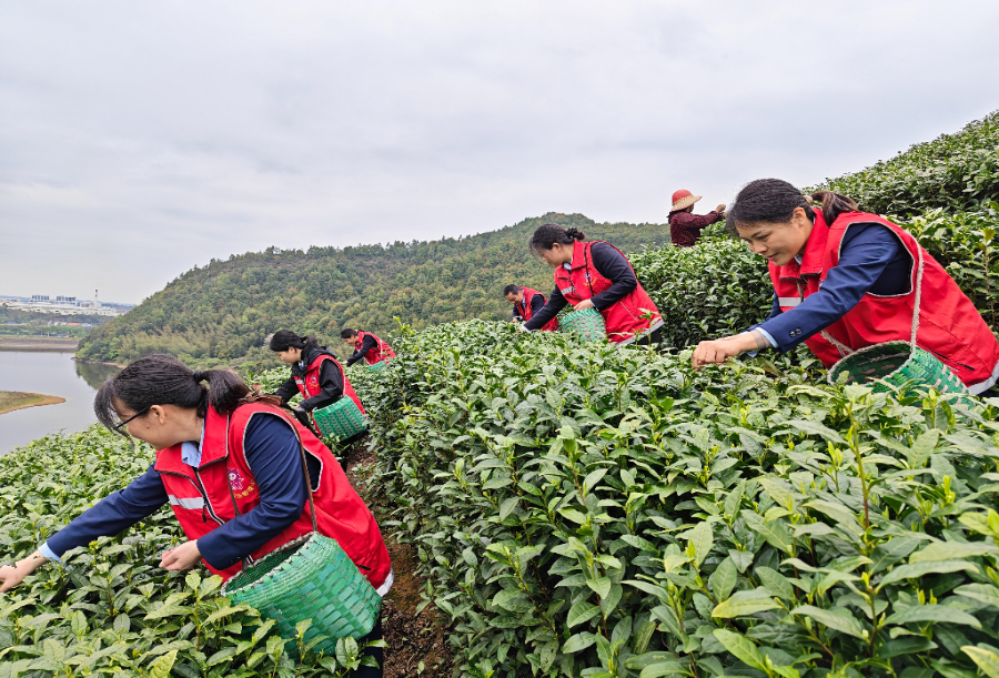 在吉安市遂川县碧洲镇黄岗村,白茶是当地近年重点推广的特色名优茶种,但其芽叶极为娇嫩细小,采摘标准高、难度大,且有效采摘时间十分有限。得知茶农采摘压力大,万安收费所10余名青年志愿者主动请缨,赶赴茶园助力采茶。集中学习采摘技巧后,身着红马甲的志愿者们便分散到茶垄间忙碌起来,俯身穿梭在翠绿的茶树间,汗水浸透衣背也顾不上休息。“太感谢你们过来帮忙!最近天天下雨,能采茶的时间太少了,这下我们也能更快抢收完这批好茶。”茶农黄师傅看着竹篓里匀整鲜嫩的茶叶,露出了开心的笑容。