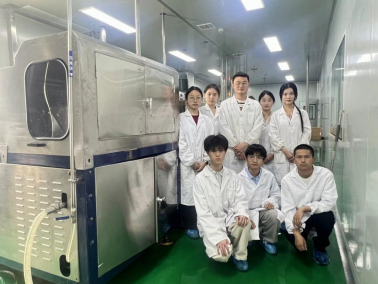韩嘉龙同学和研发团队在高能流体磨旁合影
