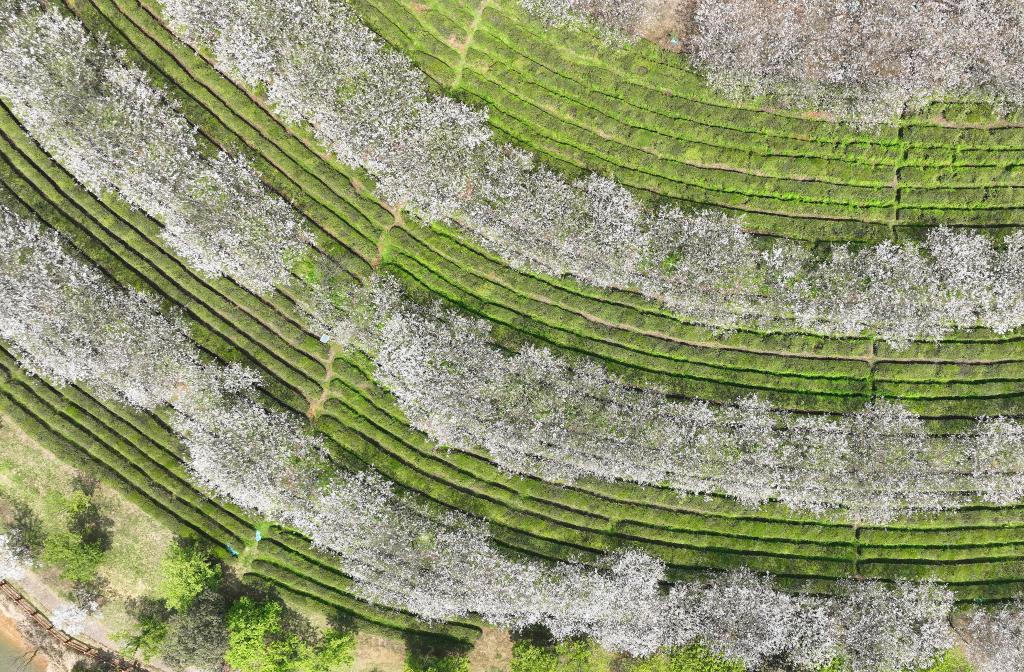 2026年4月2日这是江西省南昌县凤凰沟景区樱花谷盛开的樱花(4月1日摄)(无人机照片)。新华社记者 万象 摄