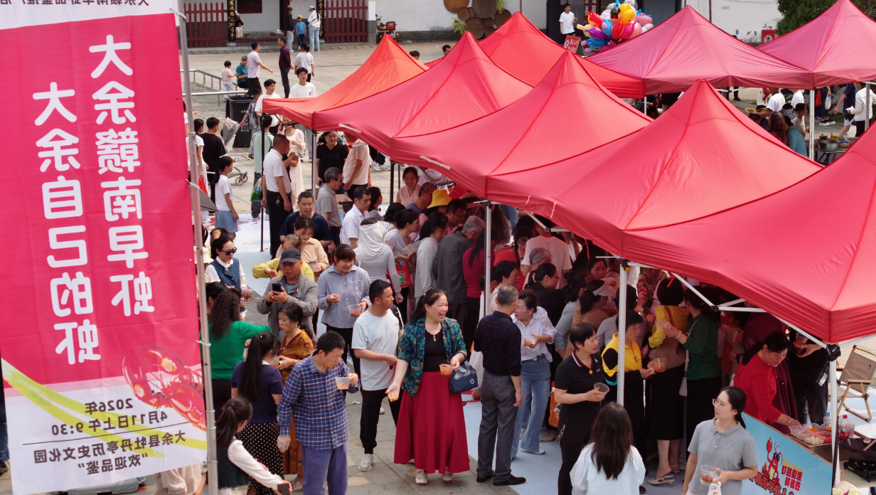 4月11日,江西省赣州市大余县牡丹亭文化园内热闹非凡。以“虾路相逢·鲜者胜”为主题的大余赣南早虾品鉴推广活动举行,四面八方涌来的游客和市民齐聚,共赴这场春日的舌尖盛宴。