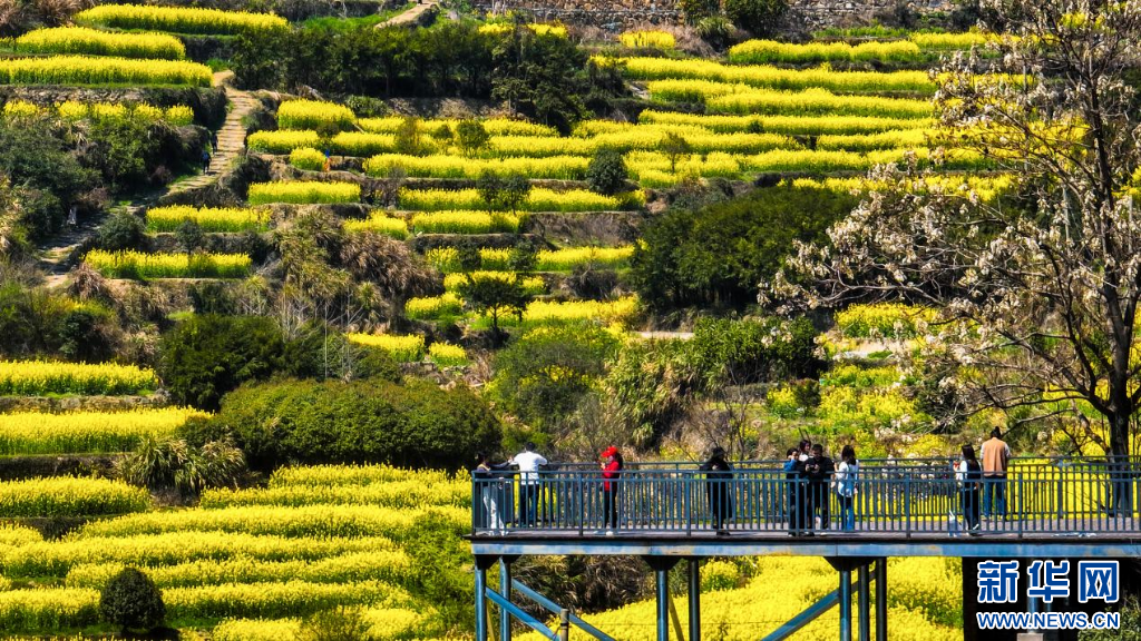 在南昌湾里牛岭村,千亩梯田油菜花进入盛花期,成为春日文旅热门打卡地。“我们平时日均接待300人左右,周末客流高峰时可以突破5000人。”南昌市湾里管理局洗药湖管理处牛岭村党支部书记谌亮平说,赏花旺季,不少村民利用自家房屋开起了农家乐,生意做得红红火火,每户平均收入可以达到1.6万元。