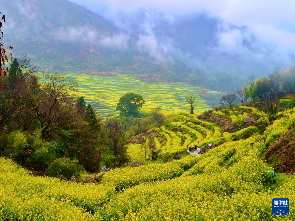 新华社南昌4月14日电(记者陈浚武)从层叠的梯田花海,到烟火氤氲的水巷古村;从烟雨朦胧间的花船巡游,到花田步道上的小火车畅游……在江西婺源,一朵油菜花将春日风光与文旅体验深度融合,把春天的“朋友圈”卷出了新花样。