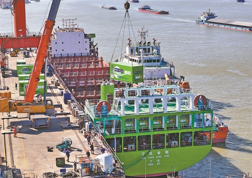 没有马达轰鸣,没有浓浓黑烟……4月15日16时许,浙江宁波舟山港北仑港区,一艘万吨巨轮在众人的注目下,解缆启航,驶向嘉兴港乍浦港区,正式投入商业航线运营。