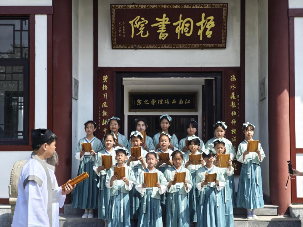 这是“循着书院看宜春”系列活动的其中一站。谷雨时节,梧桐花开,当地将书院文脉、非遗传承与文明实践融为一体,通过诵读、宣讲、体验等沉浸式环节,邀请群众和学生走进梧桐书院,共赴一场可感、可触、可学的文化之约。