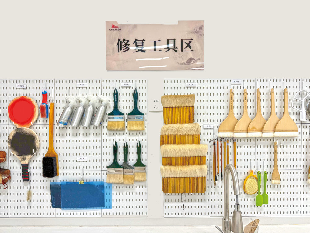 配纸是修复工作的重要环节之一。桑皮纸、马尼拉皮纸、印谱纸……古籍修复室里有一间十多平方米的房间,里面存放有200多种不同的纸张。修复师谭依玲介绍,修复古籍要根据纸张类型,找到和原书纹理、厚薄、颜色几乎一模一样的补纸,有时为了配到合适的纸张,需要在众多纸张中反复比对,甚至要亲自上手染制调色,直到肉眼几乎看不出修补痕迹为止。