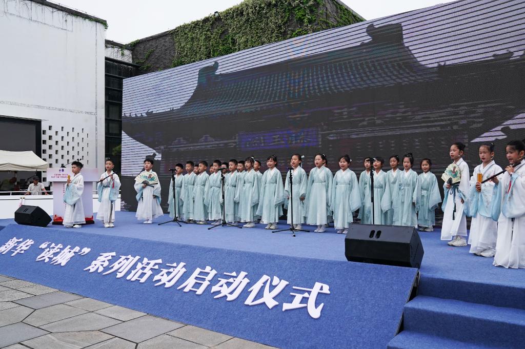 4月20日,江西师范大学附属博文实验学校学生在启动仪式现场诵读《滕王阁序》。新华社记者 万象 摄