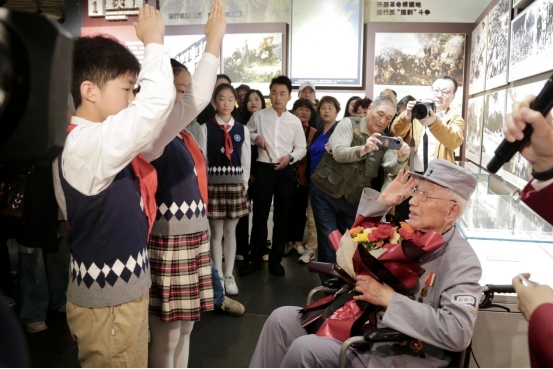活动现场,96岁的抗战老兵李潭清讲述自己少年从军、浴血奋战的往事,朴实而坚定的话语让不少观众动容。同学们深受触动,表示要铭记历史、珍惜当下,以先辈为榜样努力学习,报效祖国。