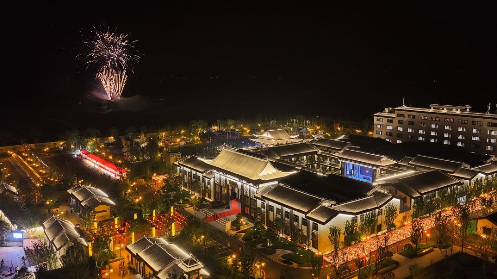 夜渐深,书院更显风华。千灯长廊流光溢彩,国风舞蹈与唐风建筑相映成趣,夜间专场演出高潮迭起。绚烂烟花腾空绽放,勾勒出“盛唐夜宴”般的浪漫图景,点亮钟陵夜色,引得游客驻足流连。