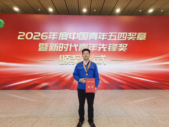4月27日,2026年度中国青年五四奖章暨新时代青年先锋奖颁奖仪式在北京举行。江铃汽车股份有限公司智能装备中心工程车间工程1组班组长杨准正,作为29名获奖青年之一,站上了领奖台。