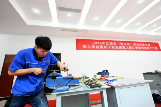 2018年,他在第六届全国职工职业技能大赛江西省选拔赛钳工赛项中拿下第一名,此后连续两届蝉联省冠军。在竞赛中,他实现了0.01毫米的纯手工加工精度——相当于一根头发丝直径的六分之一。