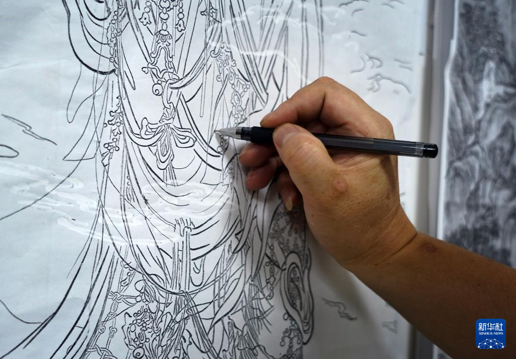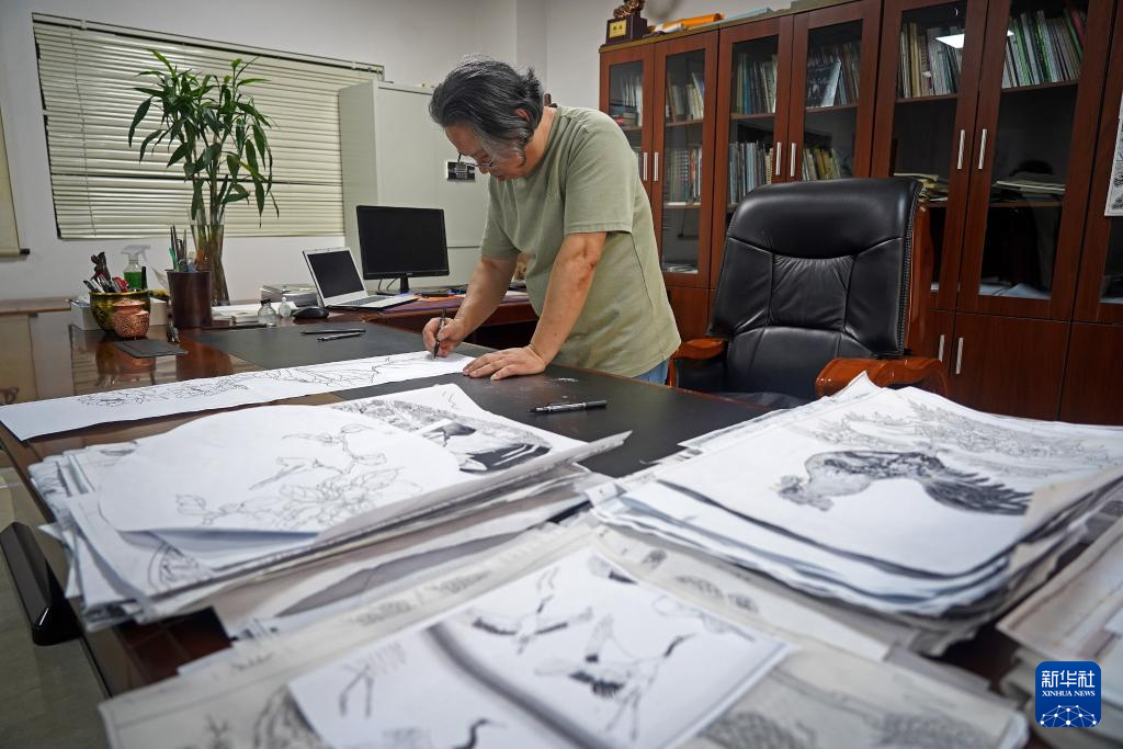 黄俊军在工作室里绘制铜雕草图(7月13日摄)。新华社记者 万象 摄