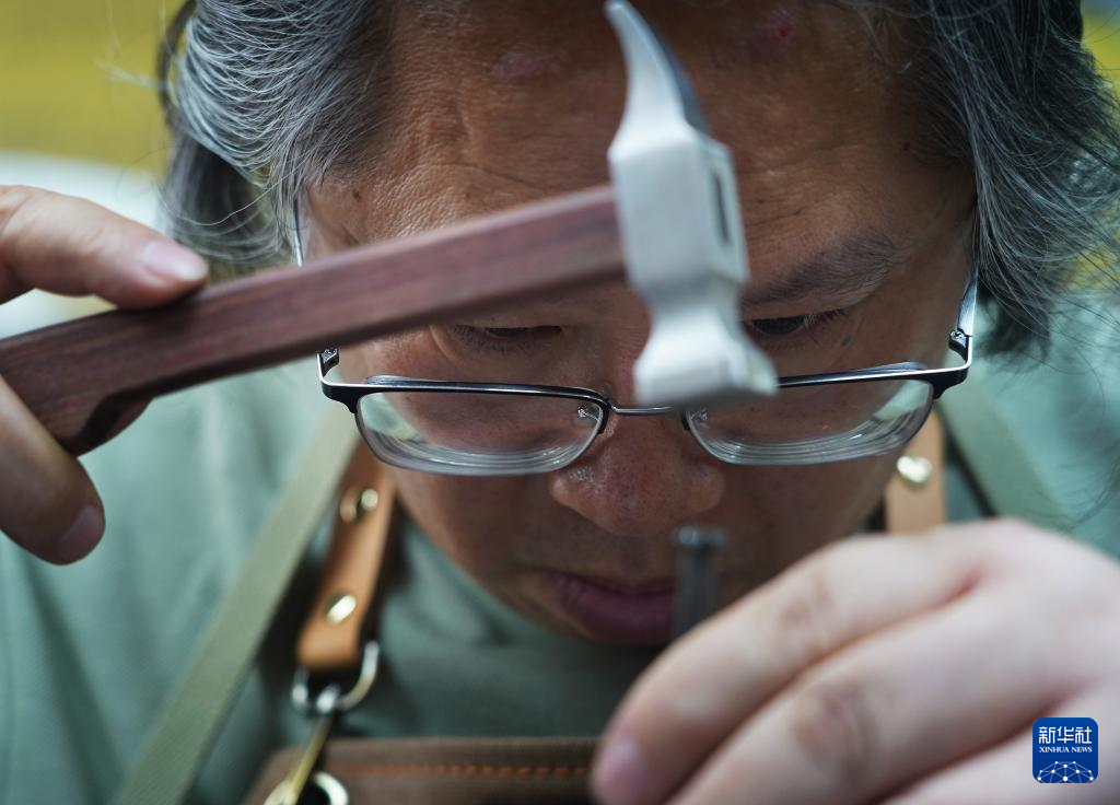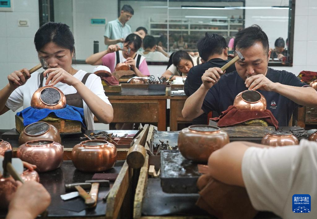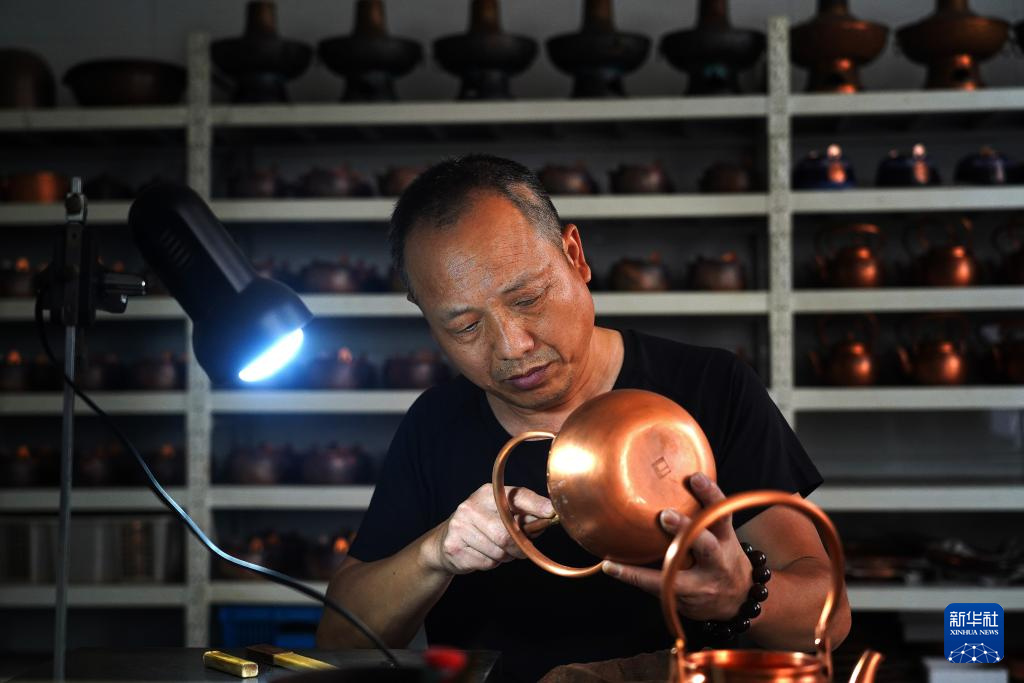 匠人在给一把铜壶整形(7月13日摄)。新华社记者 万象 摄