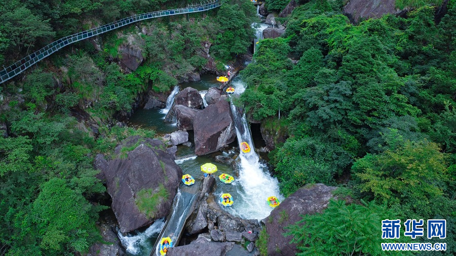 在河道中漂流而下享清凉、乘坐缆车赏秀美风光……近日,江西省抚州市资溪县大觉山景区迎来旅游旺季。近年来,资溪县大力发展生态康养旅游,依托丰富生态资源和优质服务,吸引游客纷至沓来。据悉,资溪上半年共接待游客317.6万人,同比增长29%,旅游综合收入22.23亿元,同比增长24.6%。(黄彬峰)