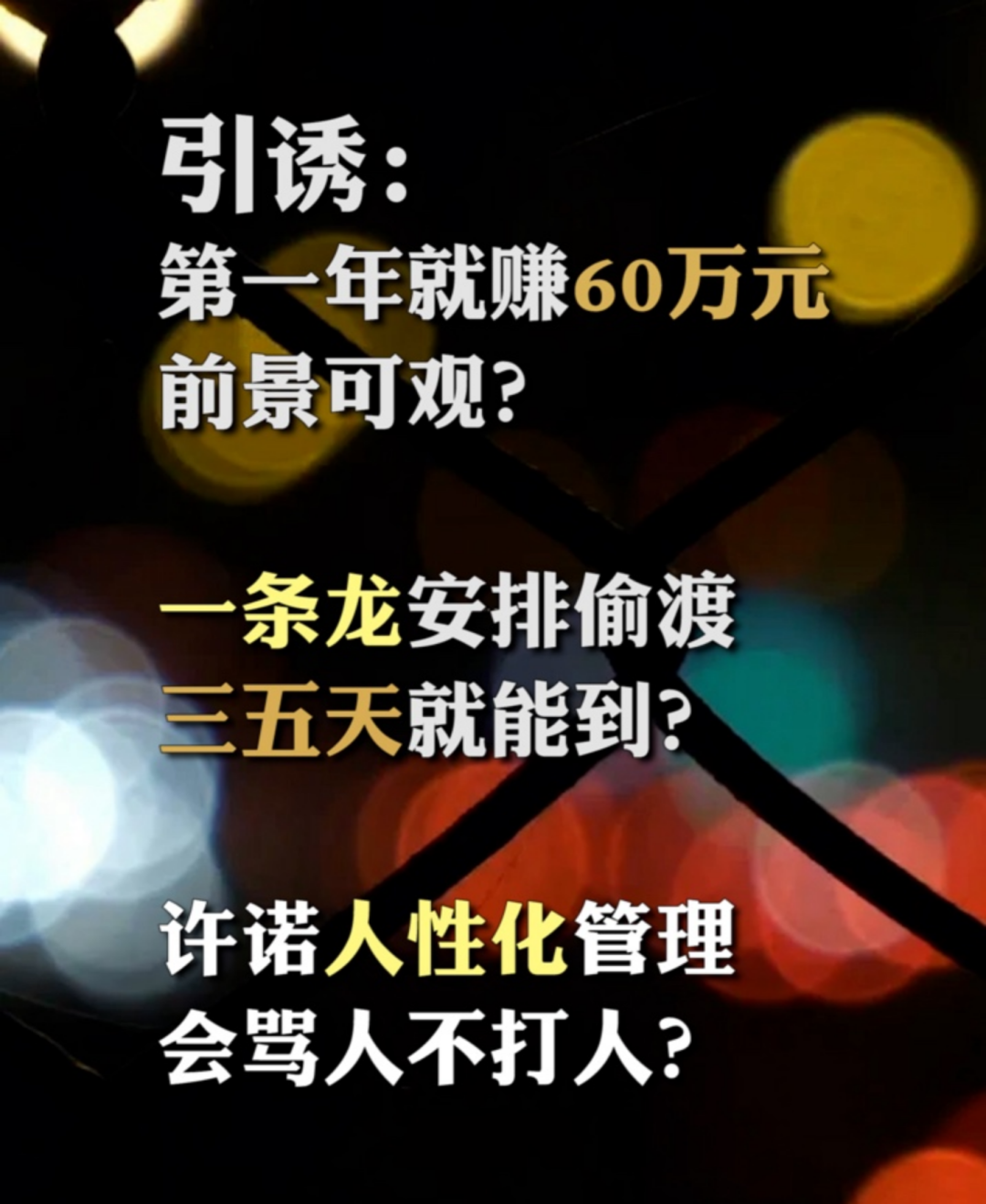 有人带你偷渡3到5天就能到公司”