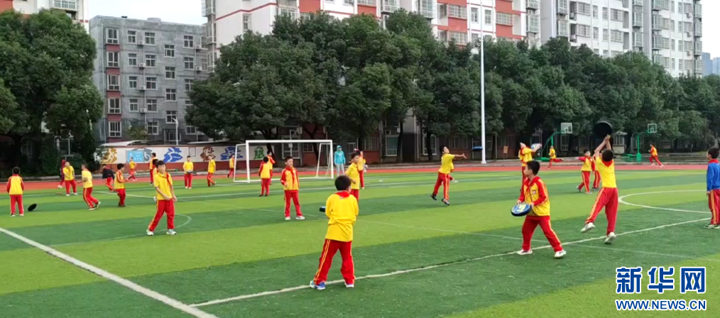 南昌二中高新校区学生们课间正在玩飞盘。新华网发 熊卓青 摄