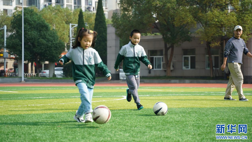 南昌外国语高新学校的课间,学生们正在踢足球。新华网发