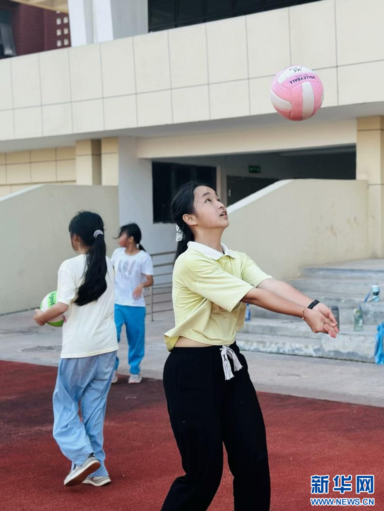 江西师大附属航空城学校的课间,学生们练习排球。新华网发