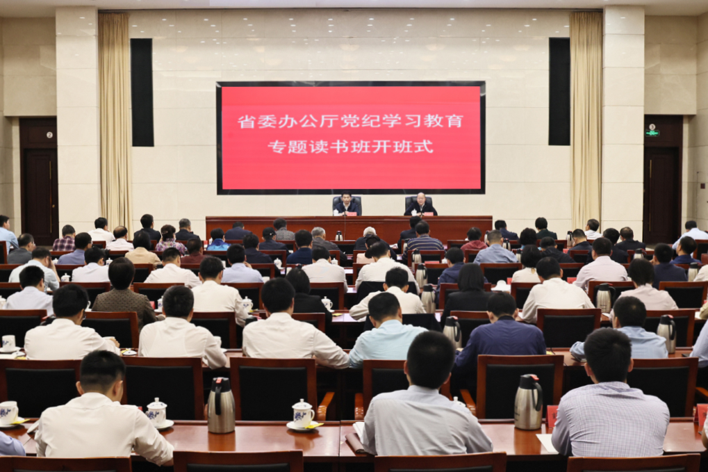 5月7日上午,江西省委办公厅党纪学习教育读书班开班,170余名党员干部参加。省委副秘书长、办公厅主任沈谦芳主持开班式并作题为“严明纪律是我们党的光荣传统和独特优势”的专题党课报告,驻厅纪检监察组组长吴雪军作专题辅导。