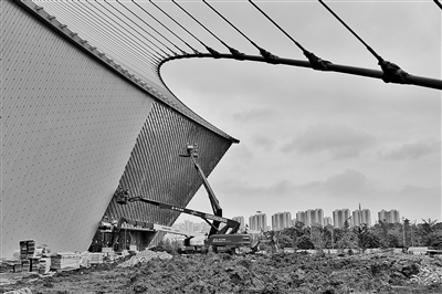 近日,由中建三局承建的南昌保利大剧院项目建设现场,工人们正在进行外立面的陶板、陶棍及拉索的安装。南昌保利大剧院定位为综合性大型甲等剧院,是我省在建规模最大的剧场。目前,项目整体施工进展顺利,预计今年10月份试运行。王蕴蓉摄