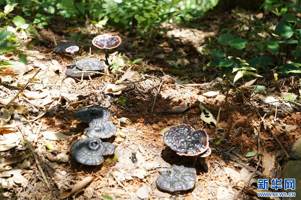江西省抚州市资溪县鹤城镇下长兴村林下灵芝种植基地的灵芝正茁壮成长。新华网发