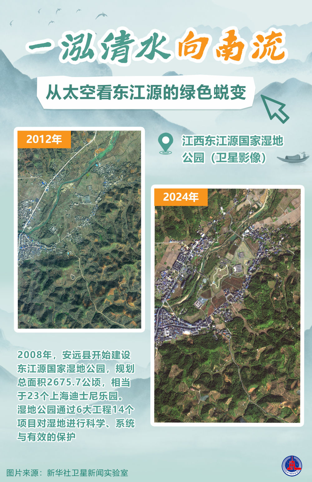👇位于安远县的江西东江源国家湿地公园对比图