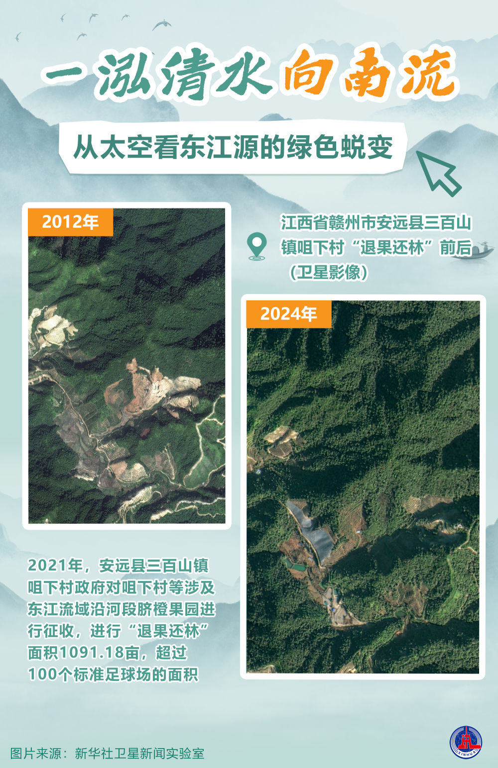 👇安远县三百山镇咀下村果园及“退果还林”后对比图