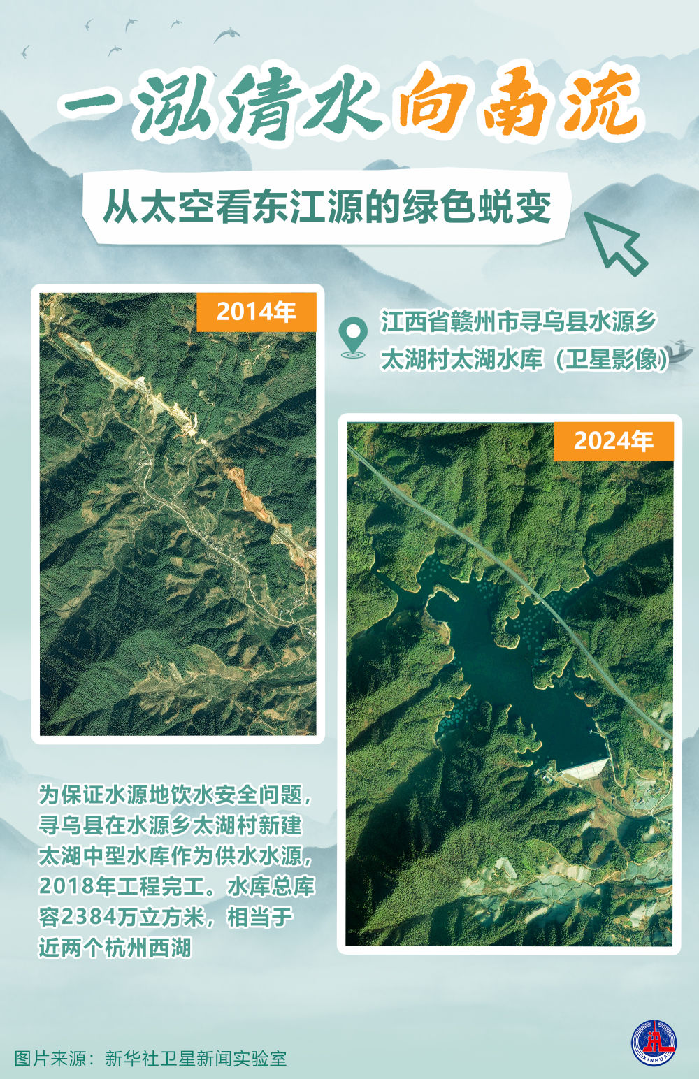 👇寻乌县水源乡太湖村原址及太湖水库对比图