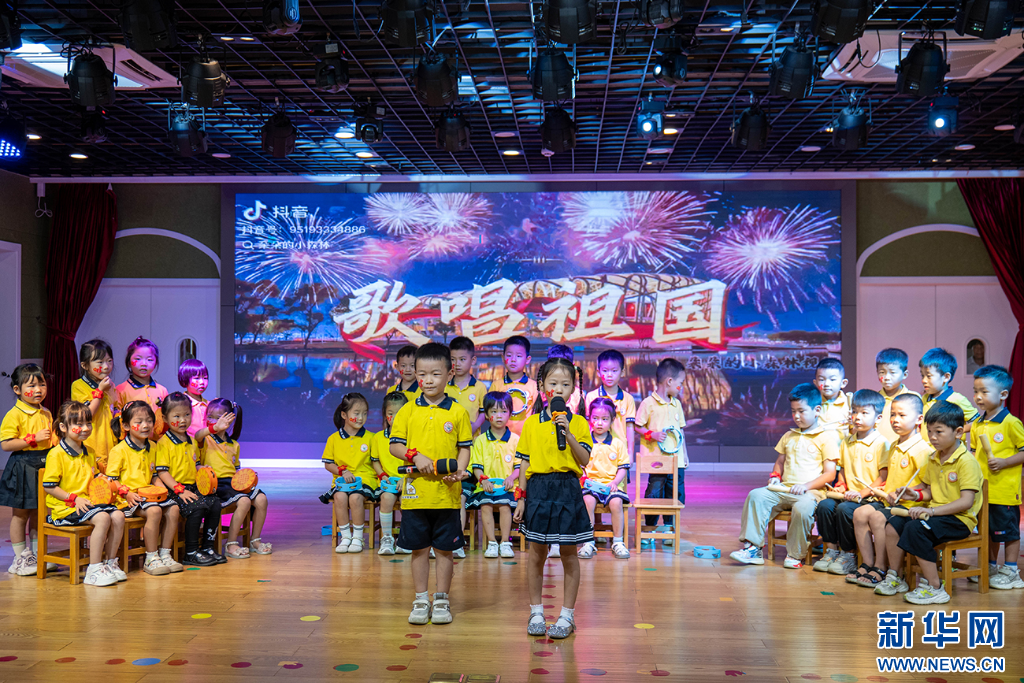 小朋友正在表演舞蹈《我和我的祖国》。新华网发 韩海建 摄