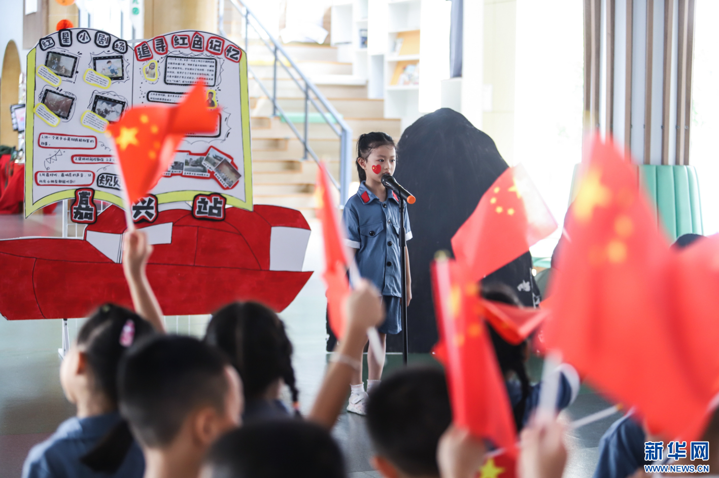 余干县第六幼儿园小朋友正在进行红色故事演讲。新华网发 韩海建 摄