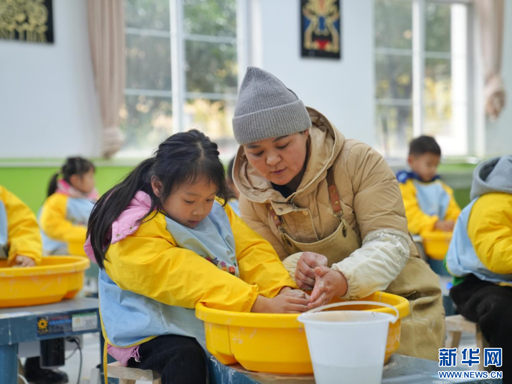 陶艺老师正在指导学生拉坯。新华网发 王强 摄