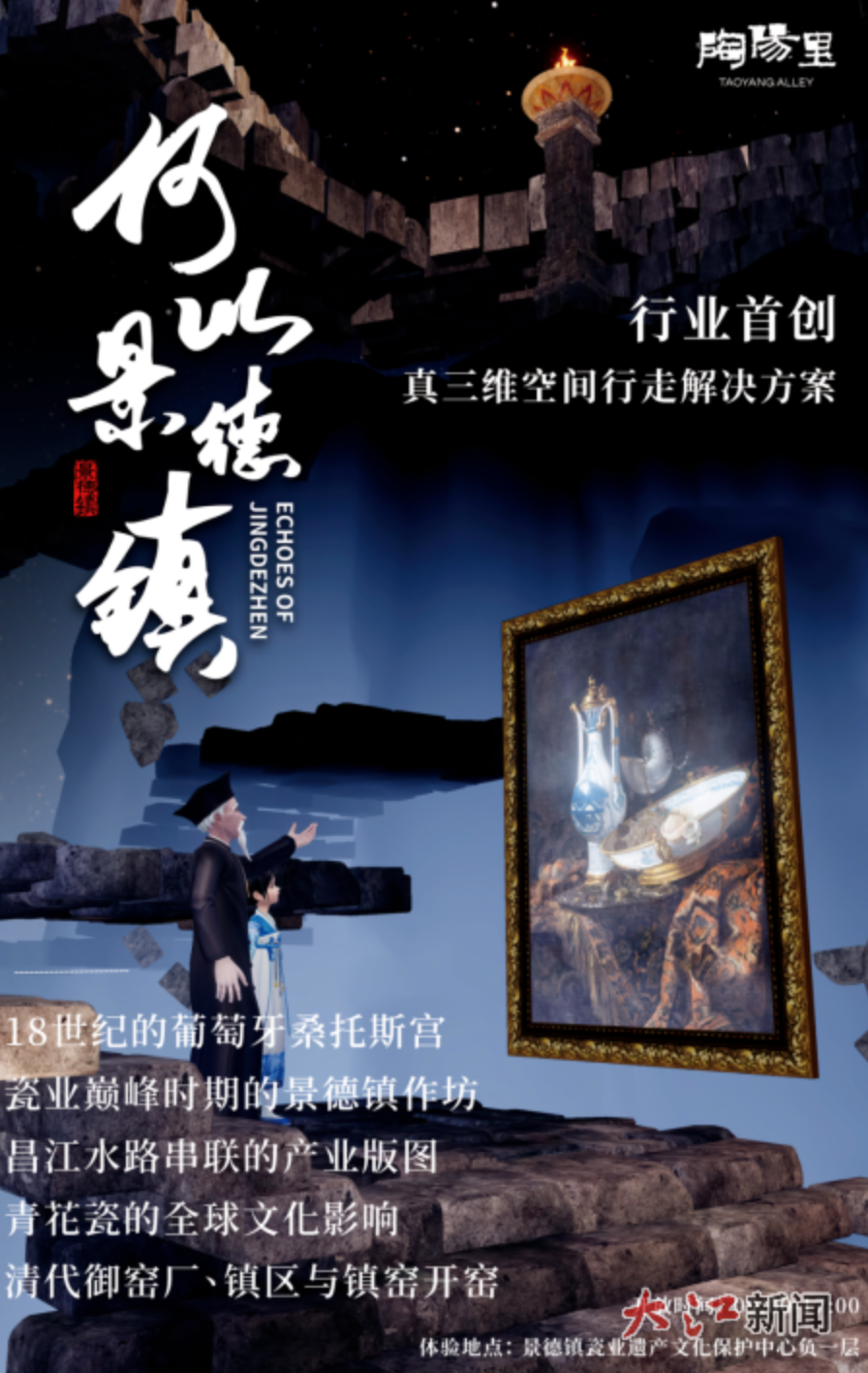 数字焕活,沉浸体验。打造 “1+5+1”数字化展示体系(1个VR、5个MR、1套AR),全市建成26个数字化场景。陶阳里景区《何以景德镇》VR等项目,让游客沉浸式穿越千年制瓷现场。