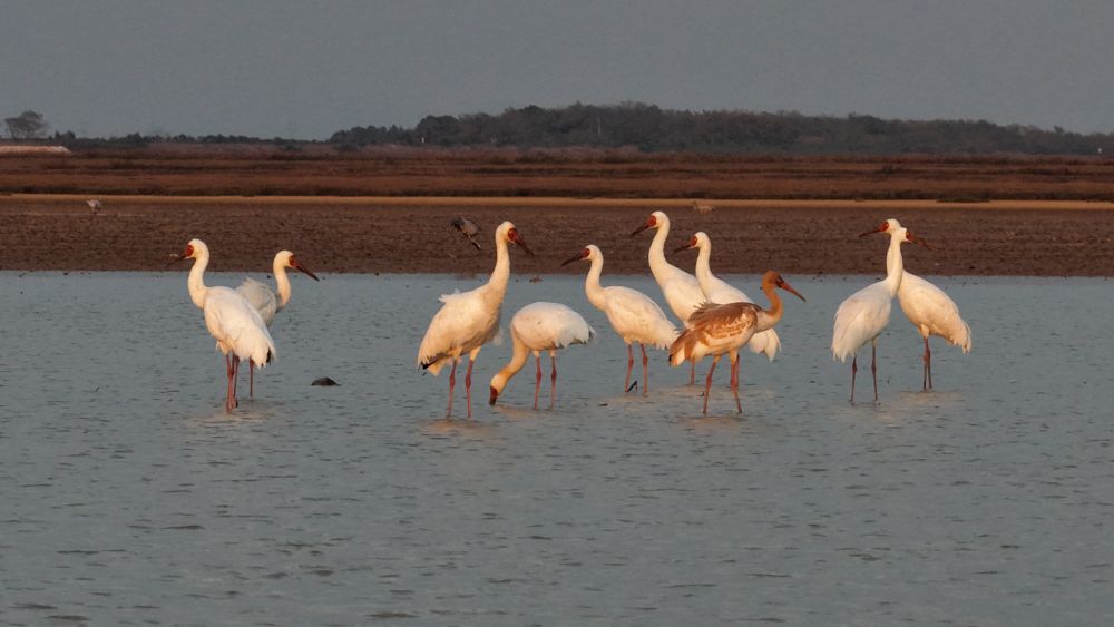 鄱阳湖上白鹤翔集,不单是食物充足。