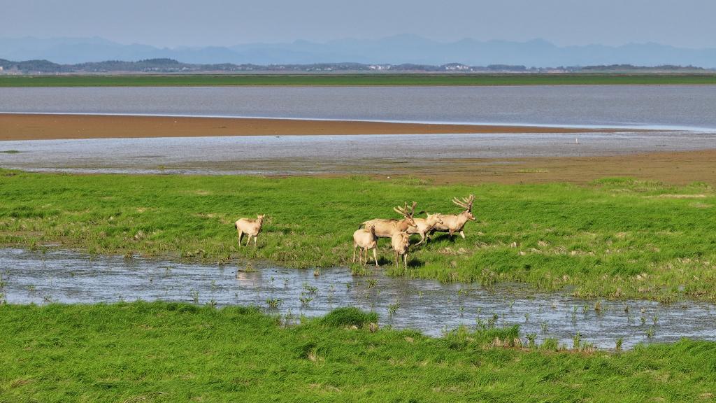 鄱阳湖也是麋鹿的古分布地。2018年,47头麋鹿被野放至江西鄱阳湖湿地区域。它们在湖区自在找寻栖息之所,上饶市鄱阳县、九江市都昌县、南昌市新建区等滨湖地区,均“闪现”过它们的身影。