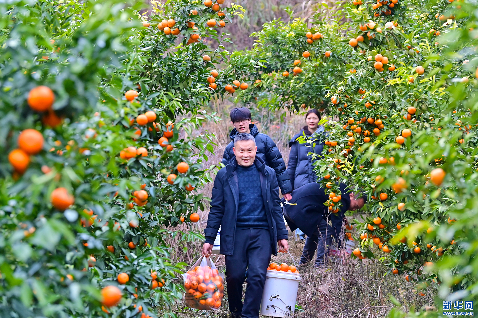 村民在果林里采摘晚熟沃柑。新华网发 邓龙华 摄